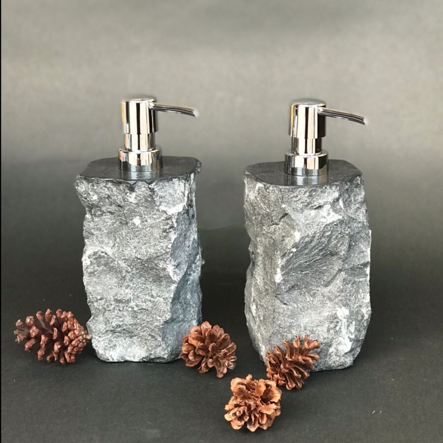 A unique and versatile bathroom decor item, our rough marble stone liquid soap dispensers are perfect for any home giving an elegant minimal design with a tropical twist. Its versatility makes it Ideal for any home decoration from coastal to boho and rustic.